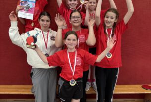 Im Ballwurf konnte Tammi Nebert dann mit 29 Metern Weite endlich das Podest erklimmen und sich über die Silbermedaille freuen. Ebenfalls Silber erreichte Paula Schirm im abschließenden 800-Meter-Lauf. In dieser Disziplin komplettierte Tim Pschribülla dann seinen Medaillensatz an diesem Tag und holte einen souveränen ersten Platz!